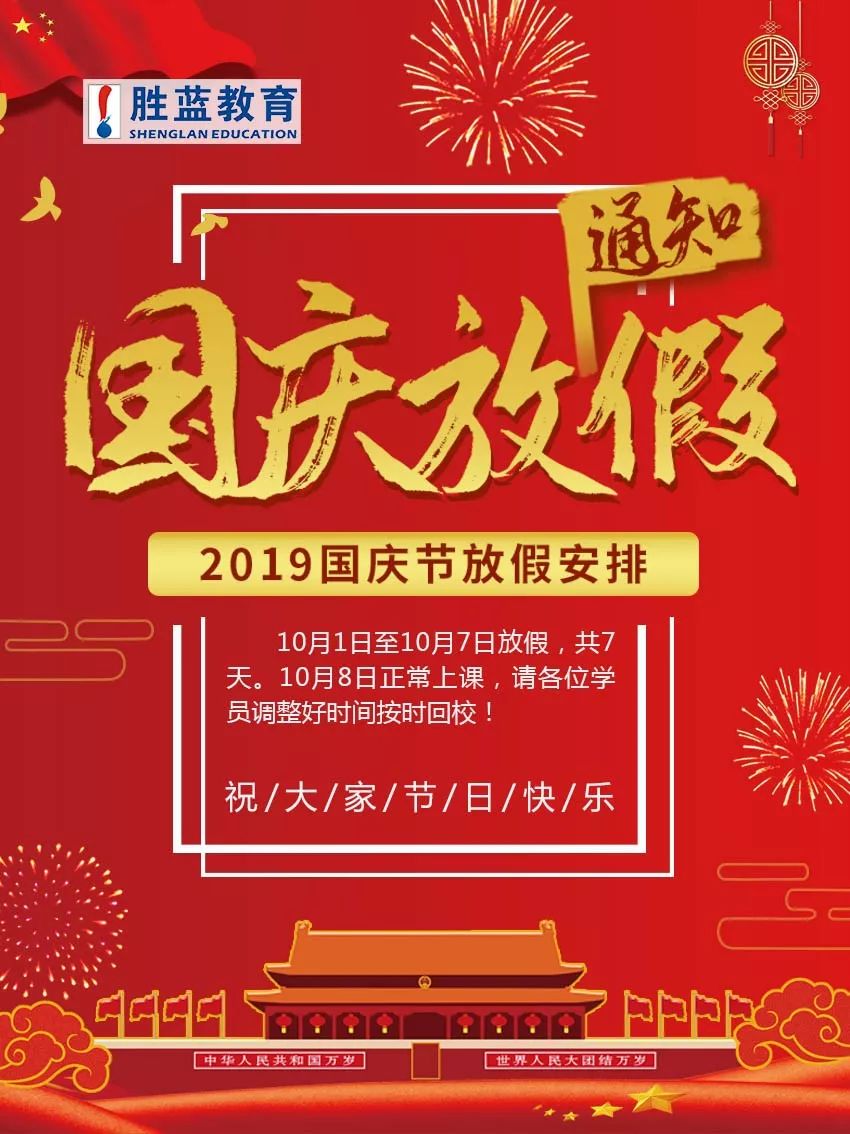 泸州市胜蓝职业学校 2019年国庆节放假通知