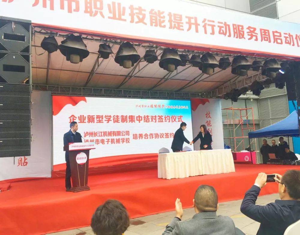 俗话说的好:家有良田万顷,不如薄技在身。为不断提升劳动者的综合素质,落实国家技能扶贫的战略要求,积极响应泸州市人社局的要求,泸州市胜蓝职业学校杨洪忠校长带领学校教师一行6人参加了启动仪式,江阳区人民政府罗勇副区长致辞,相关企业、学校人力资源分管领导、中华技能大奖获得者、全国技术能手、中国航天科技集团有限公司特级技师杨尹渝大师进行了交流发言,企业与学校进行了培养合作协议签字仪式,最后,市人社局王平副局长讲话,肯定了泸州职业培训的成绩,对下步服务职业技能提升工作提出了要求。