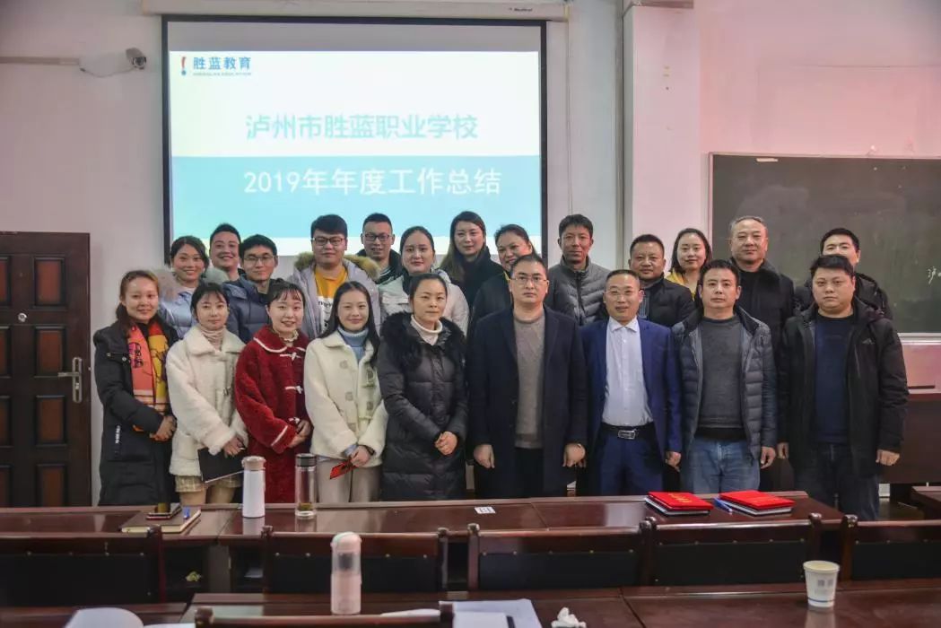 2020年1月19日下午,泸州市胜蓝职业学校全体教职工在学校多媒体教室召开了2019年度工作总结。会议在主持人行政部副主任张丹的一段开场白中拉开了序幕。
