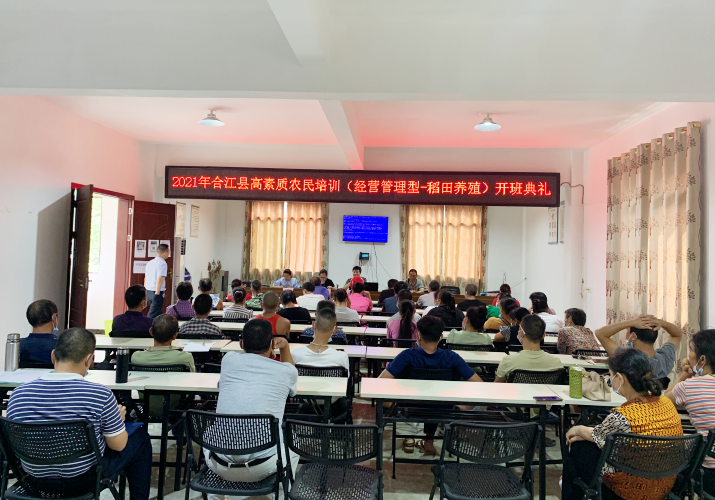 为推进“科技助农,乡村振兴”战略实施,提升高素质农民经营管理水平,拓展产业发展思路,培养有文化、懂技术、善经营、会管理的高素质农民队伍,促进农业转型升级、农村持续进步、农民全面发展,由合江县农业农村局主办,泸州市胜蓝职业学校承办的合江县高素质农民培训,先后于2021年9月6日和2021年9月7日正式开班,本次培训分为专业技能型和经营管理型两个班,先后组织来自合江县种养殖大户、家庭农场主和专业合作社带头人等83人进行了学习培训,其中经营管理型(稻田养殖)培训班40人、专业生产型(稻田养殖)培训班43人。